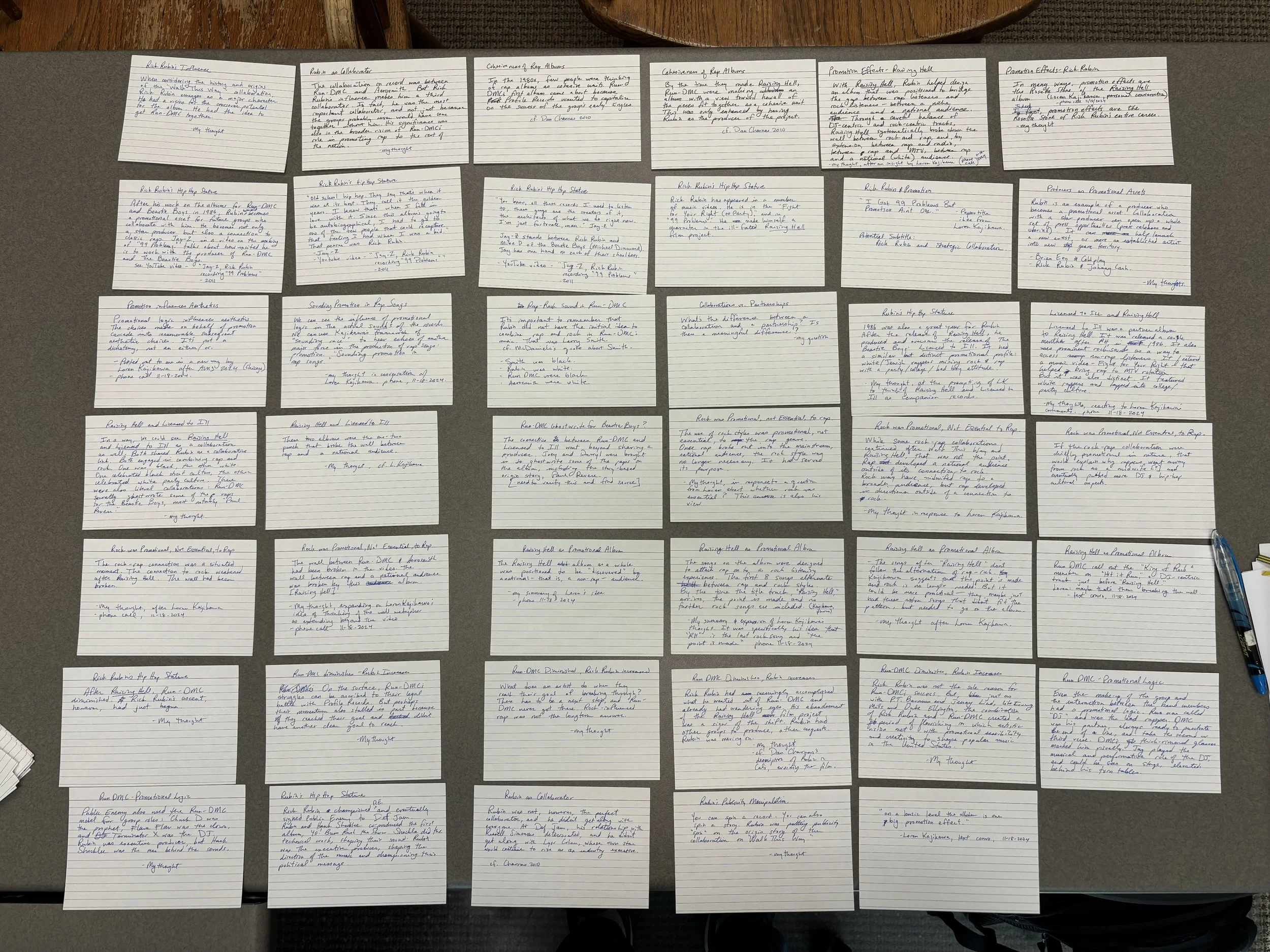 It doesn’t matter in what order the notes are written. The organization step comes later. What’s important is that my note cards represent my filtered thoughts on a topic.