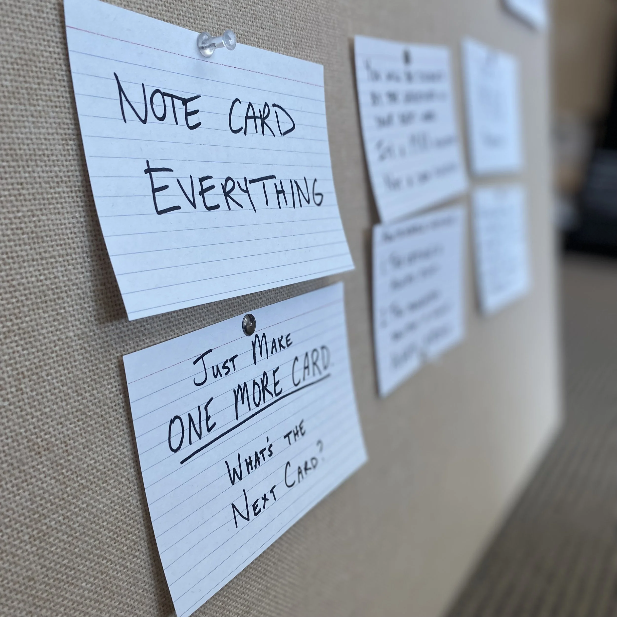 If you were to visit my office and look around, you might notice my obsession with note cards.